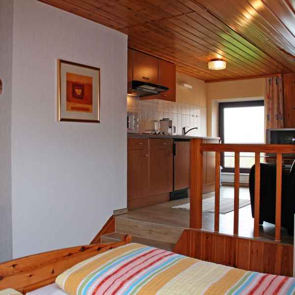 Gemütliche Ferienwohnung für 2 Personen im Obergeschoss: Wohn-/Schlafraum mit Küchenzeile